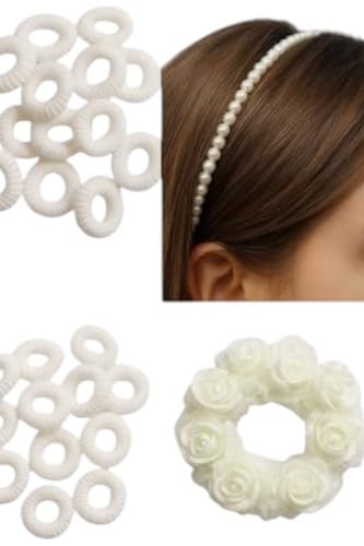 Generic - توك شعر أبيض مزين باللؤلؤ مع ورود، إكسسوار للشعر للمدرسة والمناسبات