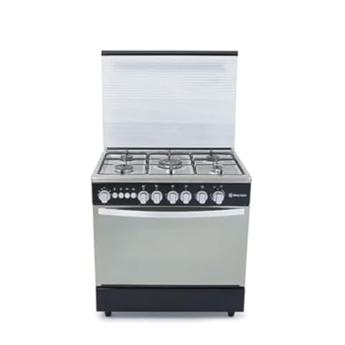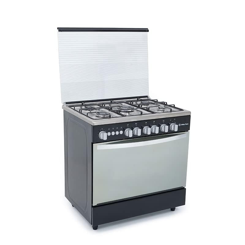 white point - بوتاجاز غاز علوي من الفولاذ المقاوم للصدأ مع شواية ومروحة من وايت بوينت - 90 × 60 سم - 5 شعلات - أسود - WPGC9060BXTA