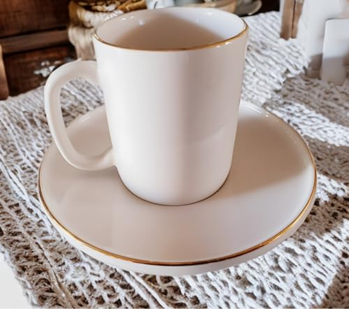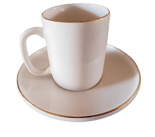 - تصميم أنيق: طقم فناجين وأطباق قهوة كلاسيك من البورسلين الأبيض يتميز بحافة أنيقة مطلية بالذهب حول الحافة.