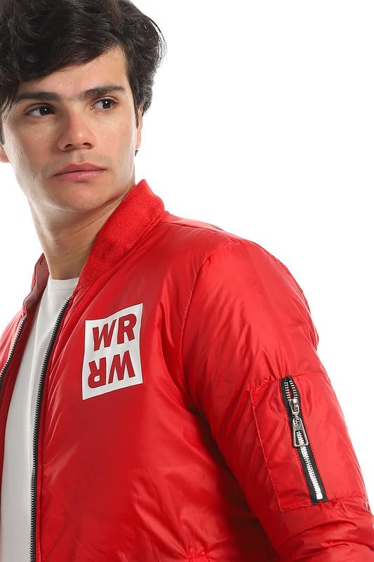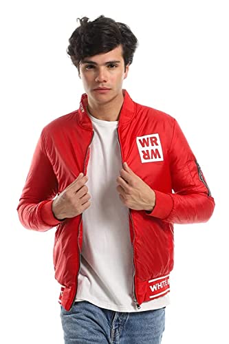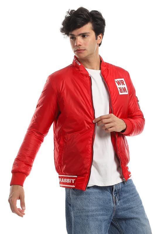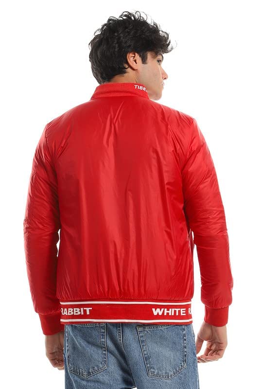 White Rabbit - جاكيت للرجال من وايت رابيت بياقة ماندرين ومقاوم للماء بحافة باستك تحمل اسم العلامة التجارية