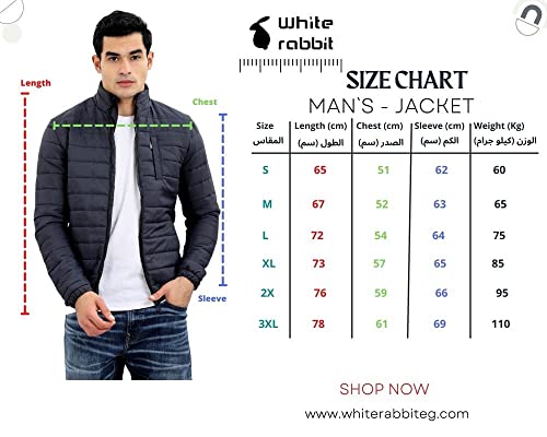 White Rabbit - جاكيت للرجال من وايت رابيت، بغطاء للرأس وسوستة للإغلاق ولوجو على الصدر