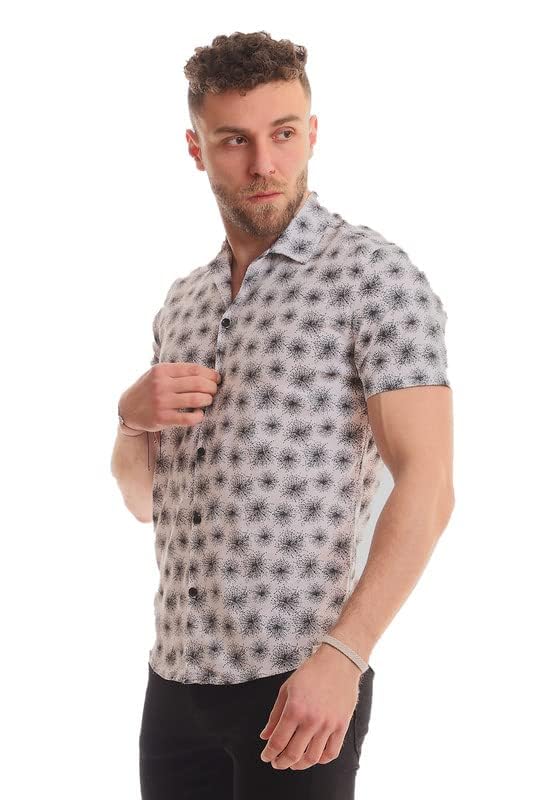 White Rabbit - قميص بازرار واكمام قصيرة بتصميم العاب نارية رجالي من وايت رابيت