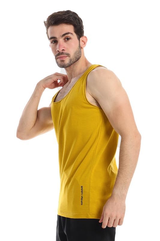 White Rabbit - تيشيرت لون أبيض بلين للرجال برقبة دائرية عريضة وبدون أكمام من وايت رابيت