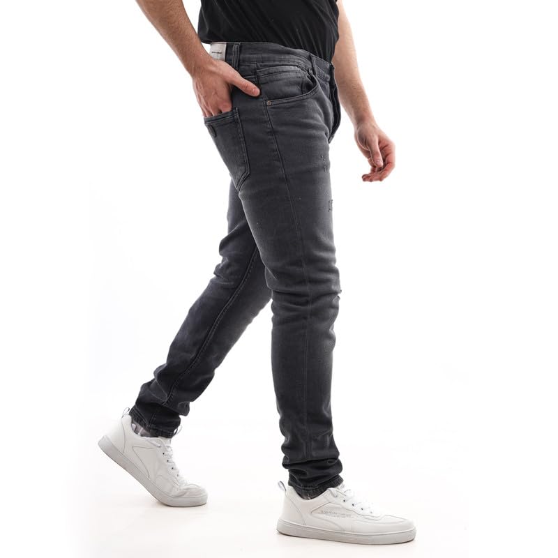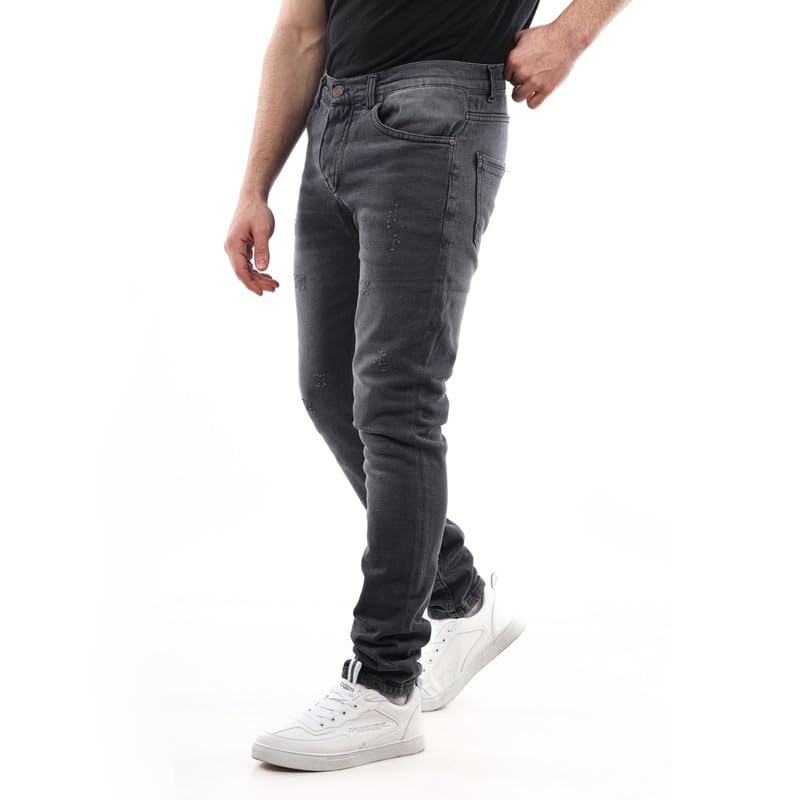 White Rabbit - بنطلون جينز بقصة عادية وخدوش أمامية للرجال من وايت رابيت