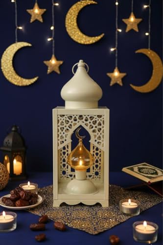 Generic - فانوس رمضان أبيض، ارتفاع 40 سم، تصميم إسلامي فريد، ديكور رمضاني