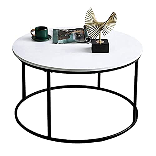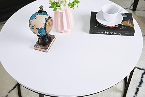 OPEX - طاولة قهوة بيضاء دائرية لغرفة المعيشة وغرفة النوم والمكتب، طاولة كوكتيل حديثة، طاولة جانبية أنيقة مع سطح خشب وإطار معدن متينة وعصرية، مقاس 80 سم