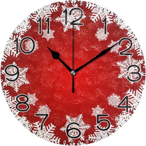 Generic - ساعة حائط بيضاء على شكل ندفات ثلج حمراء تعمل بالبطارية بدون تكتكة، كوارتز صامت انالوج بعقارب ريفي، ساعة دائرية ديكور رترو للمنزل والمطبخ وغرفة المعيشة والحمام