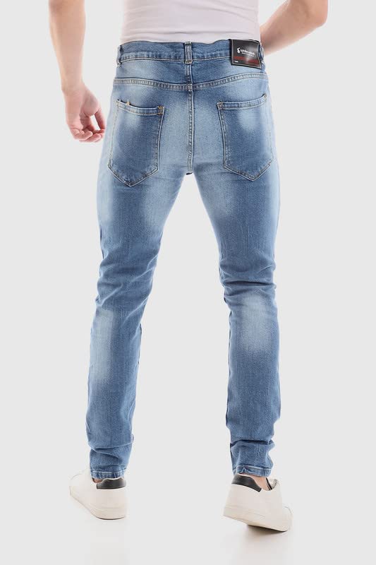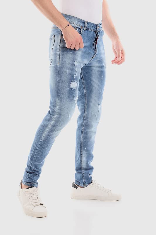 White Rabbit - وايت رابيت بنطلون جينز كاجوال انيق ممزق وقابل للغسل للرجال مقاس 30 لون ازرق, أزرق