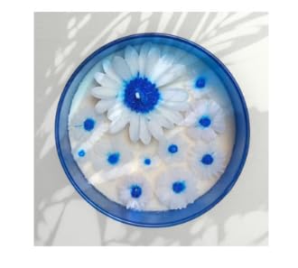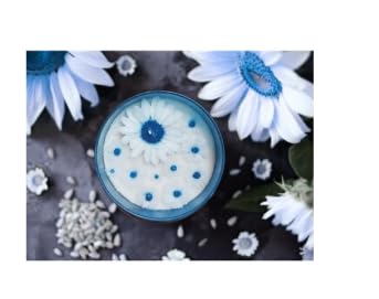 Generic - شمعة صويا معطرة برائحة زهرة عباد الشمس الابيض، لون ازرق وابيض، لتعزيز المزاج واجواء فاخرة