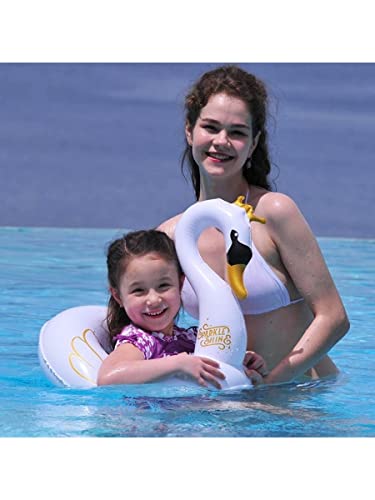 - عوامة قابلة للنفخ / لعبة قابلة للنفخ على شكل حلقة: بجعة بيضاء مع لمسات نهائية مثالية للأطفال.