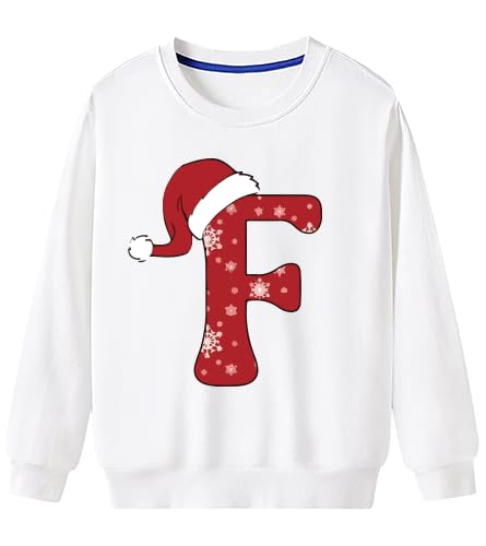 Generic - سويت شيرت ابيض بتصميم جرافيكي بحروف الكريسماس (F) مقاس (9-12 سنة)