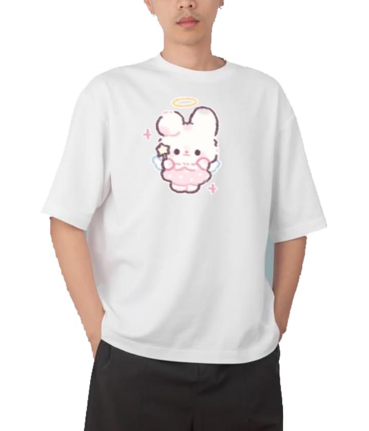Generic - تيشرت ابيض بتصميم ارنب لطيف كاواي مقاس 40