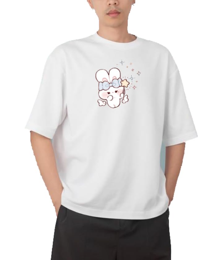 Generic - تيشرت ابيض بتصميم ارنب لطيف كاواي مقاس 49