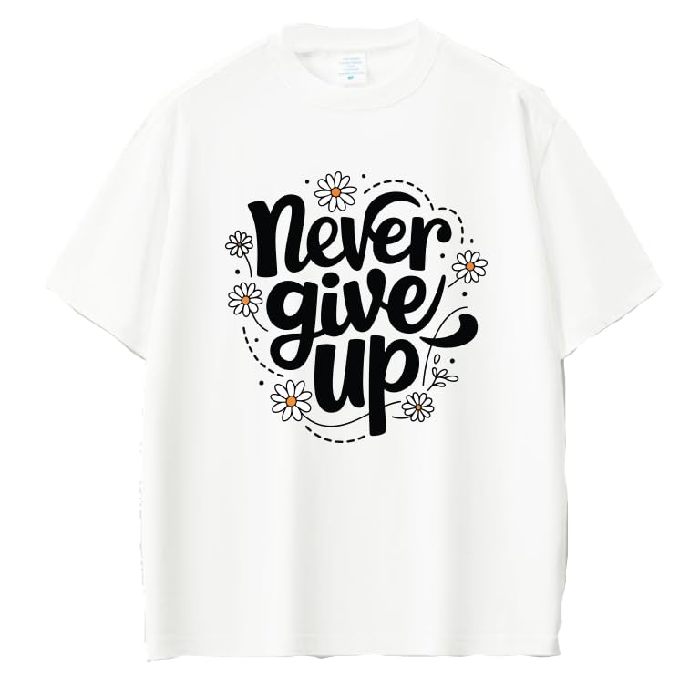 Generic - تي شيرت ابيض مطبوع عليه عبارة «Never Give Up» مع اقتباس تحفيزي مع تصميم زهور الاقحوان مقاس (3-6 سنوات)