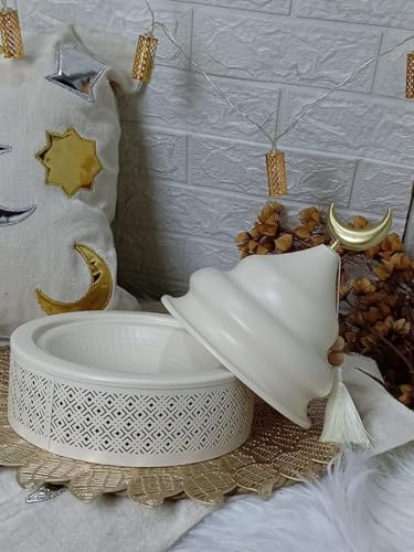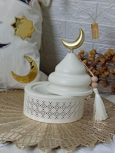 Generic - صندوق تمرية بيضاء مع قبة وهلال ذهبي، تصميم هندسي مزخرف، ديكور إسلامي لرمضان والعيد