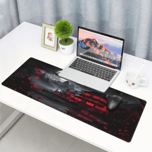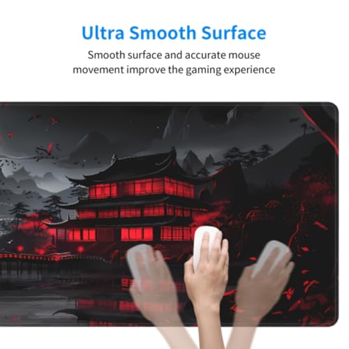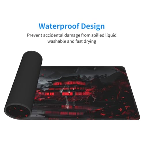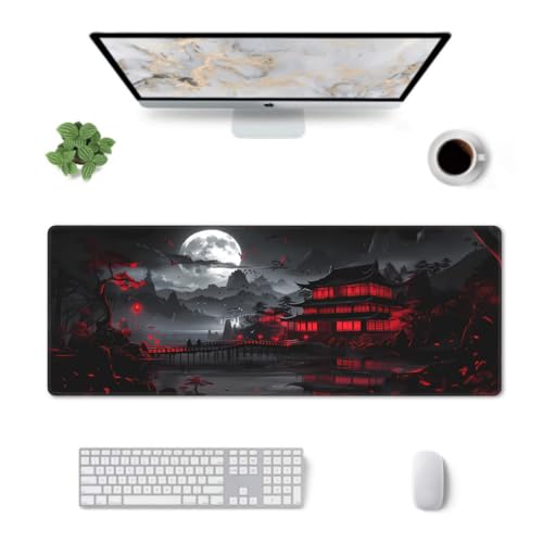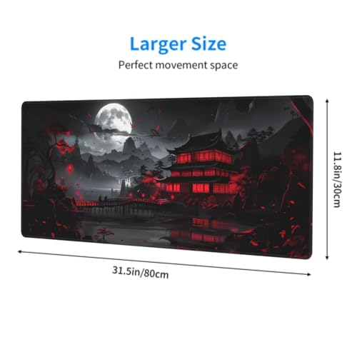 Sweetshow - قاعدة ماوس يابانية باللون الاسود والاحمر مقاس XL 31.5 × 11.8 انش، قاعدة ماوس كبيرة ممتدة للالعاب والكيبورد والمكتب بالكامل بقاعدة مطاطية غير قابلة للانزلاق وحواف مخيطة للمنزل والمكتب