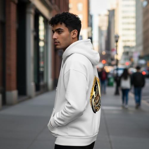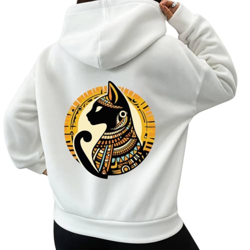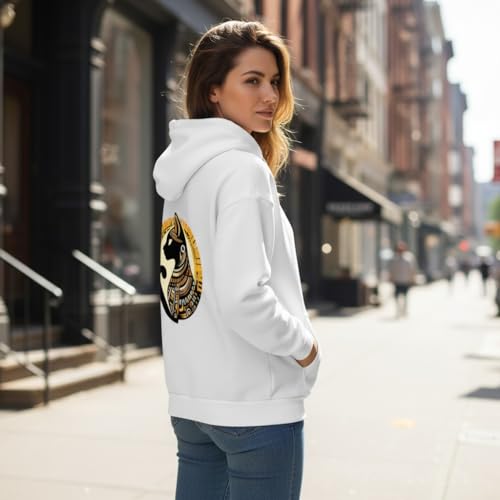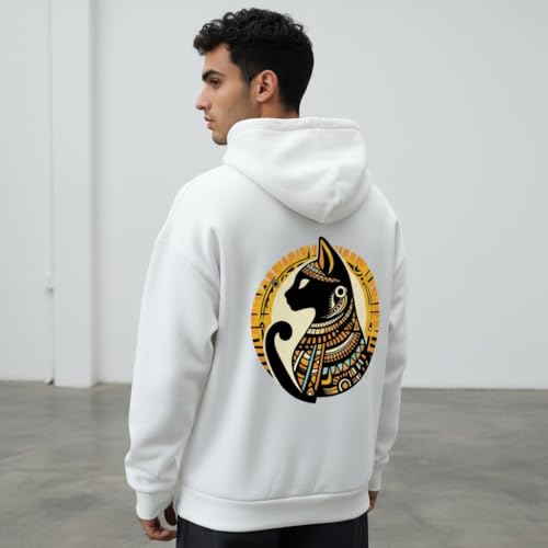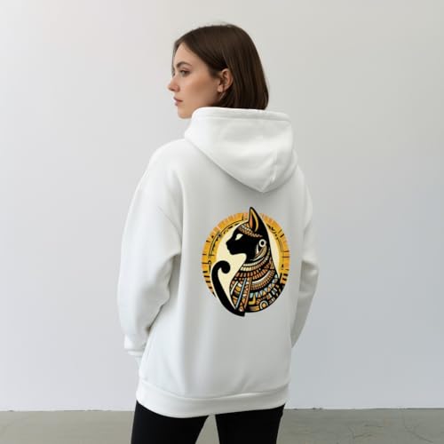 Generic - هودي ابيض للجنسين - تصميم قطة باستيت المصرية | هودي الفن المصري الفرعوني | سويت شيرت مصر القديمة | قطن ميلتون