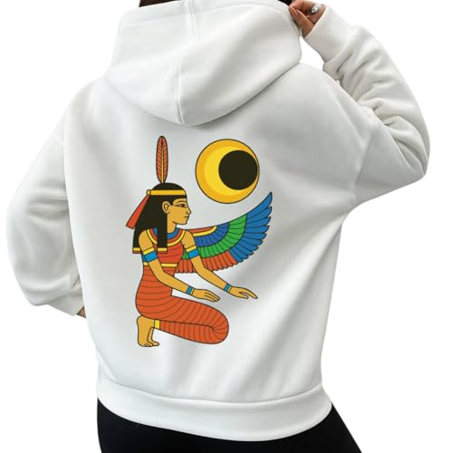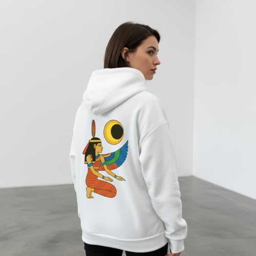 Generic - سويت شيرت بغطاء للرأس للجنسين - تصميم آلهة فرعونية مصرية | سويت شيرت للفن المصري القديم | هودي دافئ من قطن ميلتون