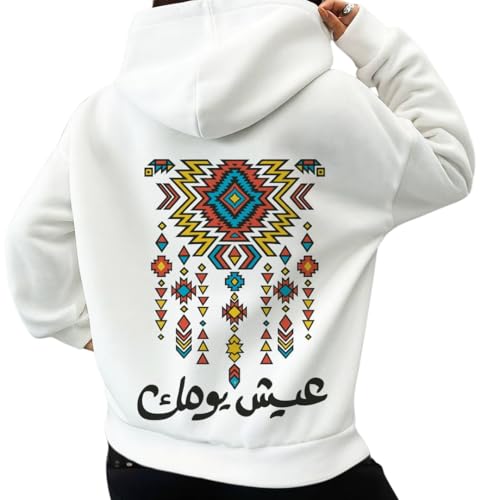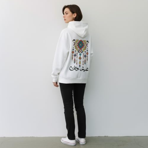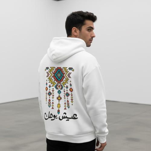 Generic - سويت شيرت بغطاء للرأس للجنسين - تصميم الخط العربي بعبارة "Live Your Day" | سويت شيرت بتصميم فني هندسي عربي تحفيزي | قطن ميلتون