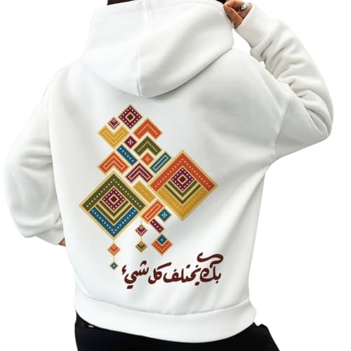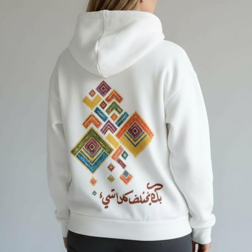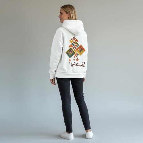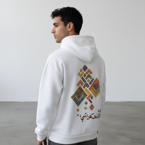 Generic - هودي ابيض للجنسين - تصميم الخط العربي "With You, Everything Changes" | هودي رومانسي ملهم | سويت شيرت قطن ميلتون