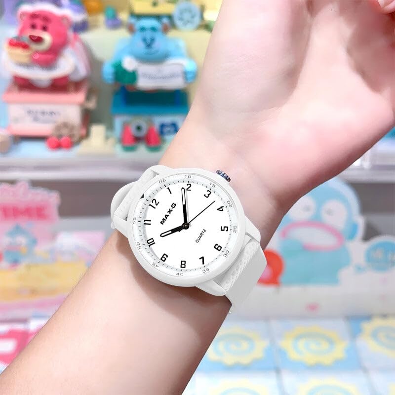 Generic - ساعة كوارتز للطلاب من الجنسين بتصميم أنالوج بسيط مع عقارب مضيئة وحركة هادئة وسوار سيليكون ناعم، ساعة مدرسية خفيفة الوزن للأطفال والمراهقين