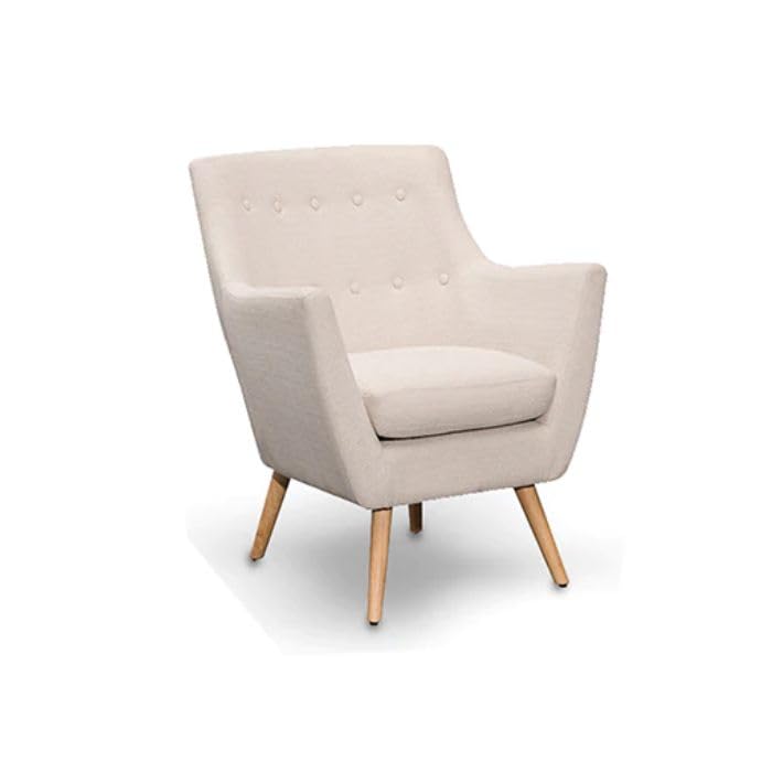 Generic - كرسي بذراعين منجد بلون ابيض، خشب زان