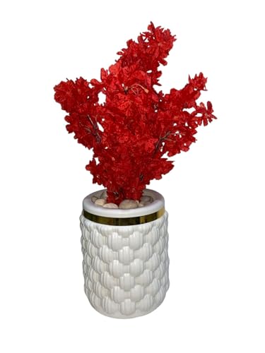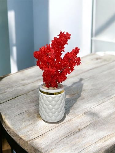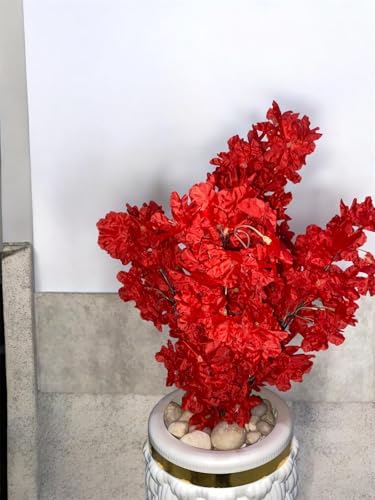 - زهور حمراء صناعية نابضة بالحياة: تتميز بأزهار حمراء زاهية اللون بتفاصيل واقعية لا تحتاج إلى صيانة أو ري وتحافظ على جمالها طوال العام