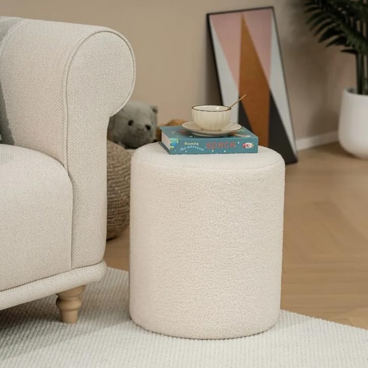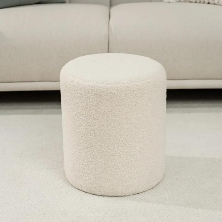 Generic - بوف دائري مخملي أبيض، كرسي أرضي ناعم، مقعد ديكور منزلي عصري