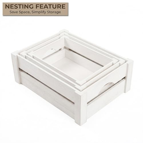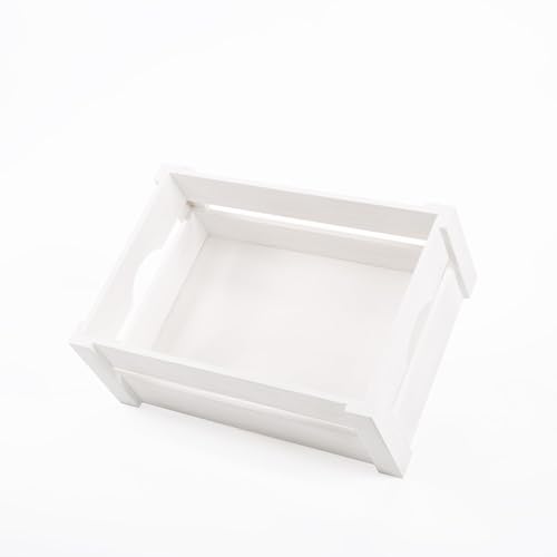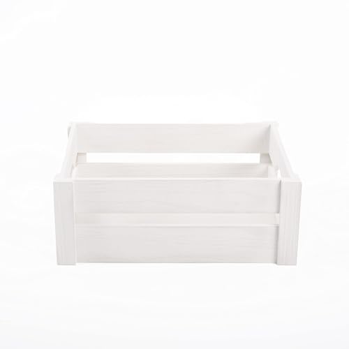 Wickerfield - صناديق تخزين خشبية بلون أبيض، صينية عرض للبيع بالتجزئة، وعاء نباتات داخلي، سلة هدايا لعيد الفصح والكريسماس (مقاس صغير)
