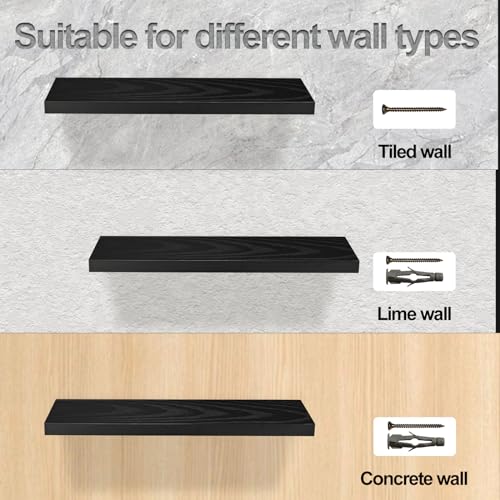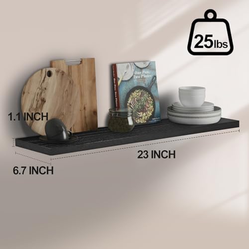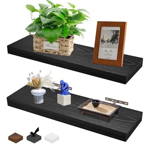 WHOEDEC - مجموعة ارفف عائمة من قطعتين رف خشبي ريفي يثبت على الحائط لديكور حائط للتخزين في الحمام وغرفة النوم المعيشة والمطبخ رفوف معلقة 23 انش اسود