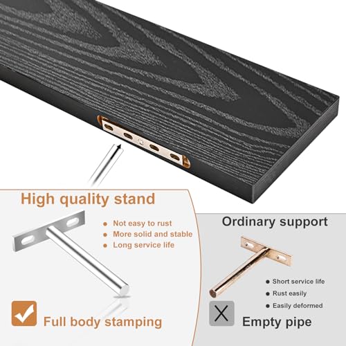 - 【أضف الأناقة إلى حائطك】- يمكن ترتيب هذه الأرفف العائمة بأي طريقة تريدها، مما يسمح لك بإنشاء عرض مخصص يناسب أسلوبك الفريد. ضعها جنبًا إلى جنب، قم بتكديسها فوق بعضها البعض، أو قم بتثبيتها للحصول على مظهر لافت للنظر، ستضيف هذه الأرفف على الفور لمسة من الأناقة والعملية إلى جدرانك. بفضل تصميمها الأسود الأنيق وسحرها الريفي، ستكمل أي نمط ديكور.