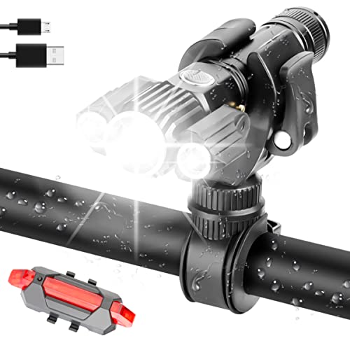WholeFire - مصابيح دراجة قابلة لإعادة الشحن بمنفذ USB و4 أوضاع إضاءة أمامية وخلفية مقاومة للماء للإضاءة أثناء ركوب الدراجات على الطرق والدراجات الجبلية من هول فاير