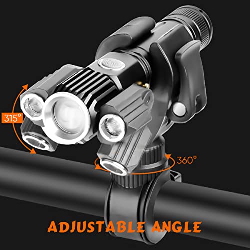 - 🚲4 أوضاع إضاءة وتركيز قابل للتعديل -- يتميز الفانوس الأمامي بمفتاح بلمسة واحدة وأربعة أوضاع إضاءة مختلفة حسب حاجتك. يدعم ضوء الدراجة الأمامي الأوضاع التالية: درجة الإضاءة الكاملة وإضاءة صغيرة مزدوجة وإضاءة كبير ووضع الوميض.