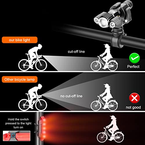 - 🚲تصميم مطور-- نظام أمان كامل لركوب الدراجات يتميز بفانوس أمامي ومصباح خلفي، يتم شحنه عبر منفذ USB لسهولة الاستخدام. مقاوم للماء بدرجة IPX6 ومقاوم للاهتزاز، مناسب للبيئة الخارجية، حتى إذا هطل المطر، فلا داعي للقلق بشأن الركوب.