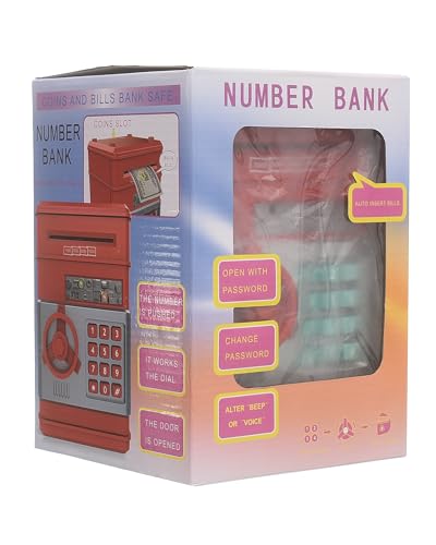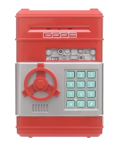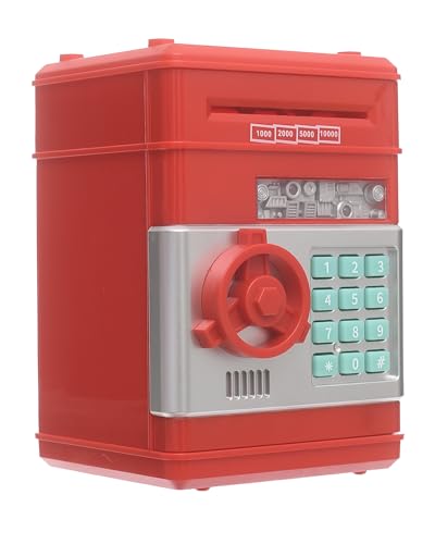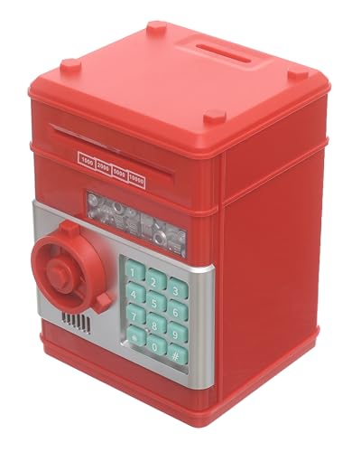 Generic. - حصالة صراف اوتوماتيك للبيع بالجملة وصندوق توفير المال الأمن، حصالة صغيرة بتصميم كرتوني لتوفير المال، أحمر