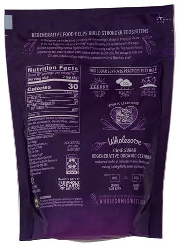 Wholesome - سكر قصب عضوي من هولسم، مصنوع من مصادر تراعي التجارة العادلة، لا يحتوي على عناصر معدلة وراثيًا وخالي من الجلوتين، 1 رطل