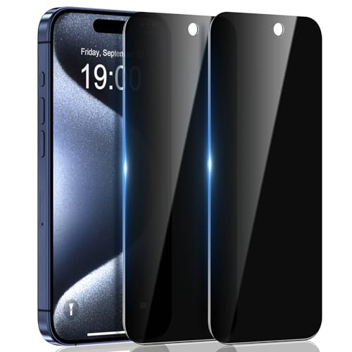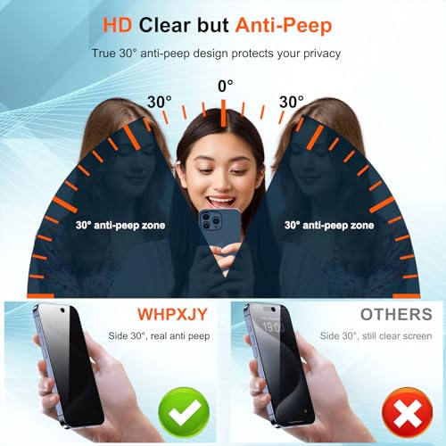 WHPXJY - 2 واقي شاشة لحماية الخصوصية لموبايل ايفون 15 برو ماكس - بلس من دبليو اتش بي اكس جيه واي الزجاج المقوى الخاص مضاد للتجسس وللخدش حساس للمس خال الفقاعات سهل التركيب متعدد الالوان