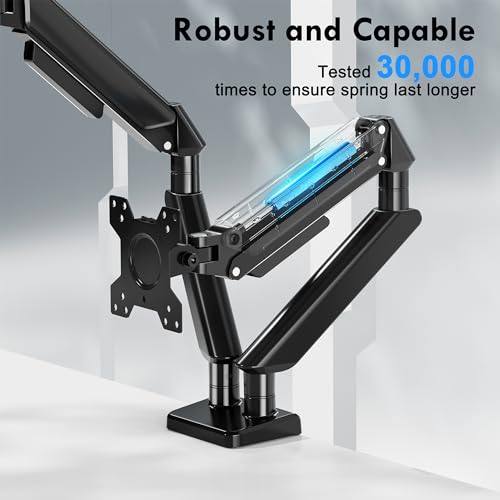 - 【هيكل قوي ومتين】حامل مكتب بذراع الشاشة المزدوج مصنوع من الألومنيوم الممتاز، يدعم بسهولة الشاشات مقاس 32 انش دون أي تذبذب. يتميز حامل الشاشة ثنائي الذراع واي فون بنابض غاز مدمج 750 N⋅m، يخضع لاختبار المتانة لمدة 30,000 مرة تم اختباره لضمان دعم طويل الأمد لشاشتك.