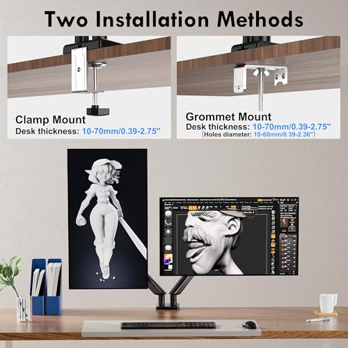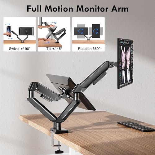 - 【حامل شاشة مزدوج بحركة كاملة】يتميز حامل الشاشة المزدوج واي فون بحركة ممتازة من اليسار واليمين والأعلى والأسفل وزوايا مختلفة لرؤية مثالية. يسمح بدوران +/-180 درجة لتوفير قدرة ضبط الحركة الكاملة لرؤية أفضل. إمالة +/-90 درجة لأعلى وأسفل ودوران 360 درجة لعرض شاشاتك عموديًا أو أفقيًا.