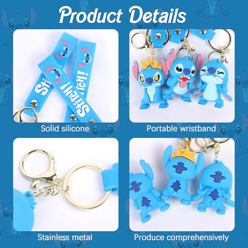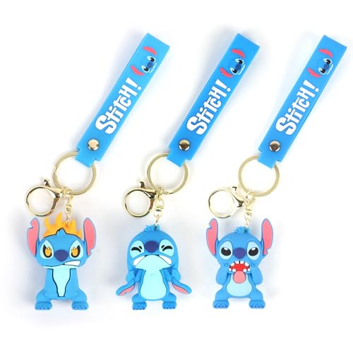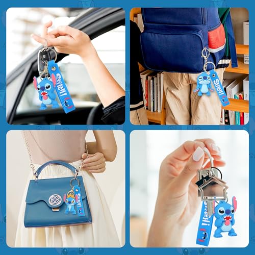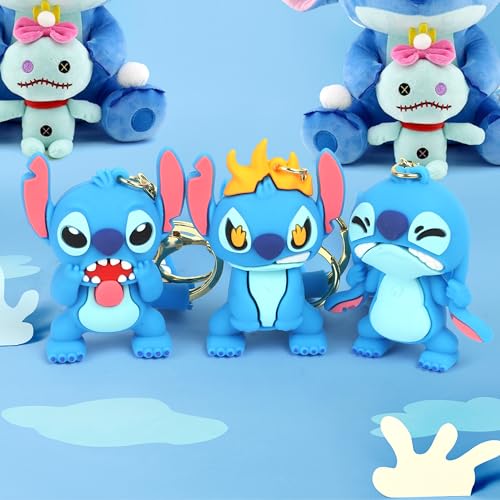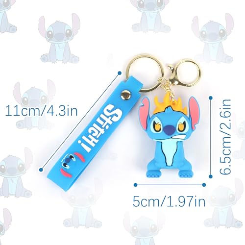 Wiainty - سلسلة مفاتيح كرتونية لطيفة ثلاثية الأبعاد بتصميم ستيتش، زينة سلسلة مفاتيح وحلقات مفاتيح كرتونية للشنطة للأطفال والبالغين، دلاية حلقة مفاتيح للشنط والمفاتيح من واينتي، أزرق، قطعة واحدة