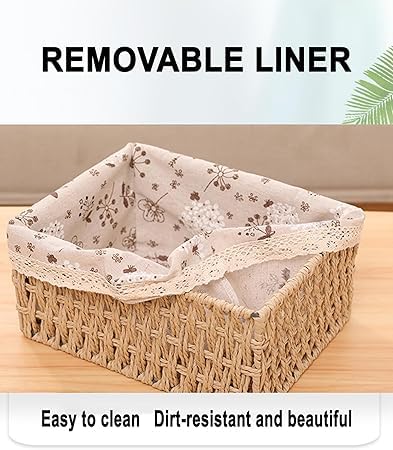 - سلة تخزين مبطنة سهلة التنظيف: تحتوي السلال المنسوجة على بطانات قطنية قوية لمزيد من الحماية. تأتي السلة المنسوجة مع بطانة قطنية ناعمة، إذا سقطت بعض الأجزاء الصغيرة في السلة، فما عليك سوى إزالة بطانة السلة لتنظيفها أو غسلها.