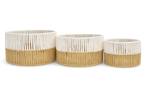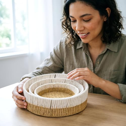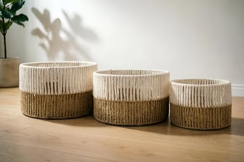 - مصنوعة يدويًا من ألياف طبيعية فاخرة، توفر هذه السلال متانة استثنائية وتصميم صديق للبيئة، وتجمع بين الملمس الناعم والجاذبية الجمالية الخالدة التي تعزز أجواء أي غرفة دون التنازل عن الاستدامة.
