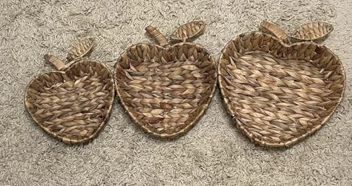 Generic - طقم صواني خوص , سلال تخزين منسوجة يدويًا، طقم من ٣ قطع، للمطبخ والمكتب، للعيش والخضار و للفواكه والوجبات الخفيفة