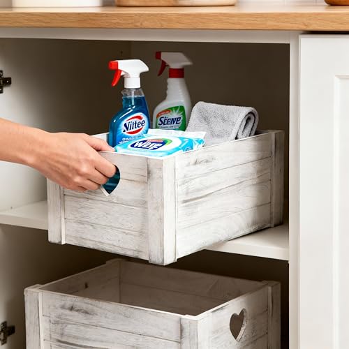 Wickerfield - صناديق خشبية جميلة بمقابض على شكل قلب صندوق تخزين خشبي صينية ارفف هدايا مقاس S من ويكيرفيلد