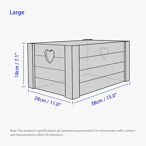 Wickerfield - صناديق خشبية جميلة مع مقابض على شكل قلب من ويكرفيلد صندوق تخزين خشبي صينية ارفف هدايا مقاس L