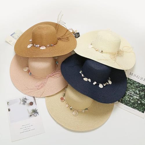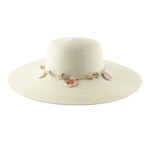 Generic - قبعه الشمس ذات الحافه العريضه مزخرفة بالصدف الطبيعي