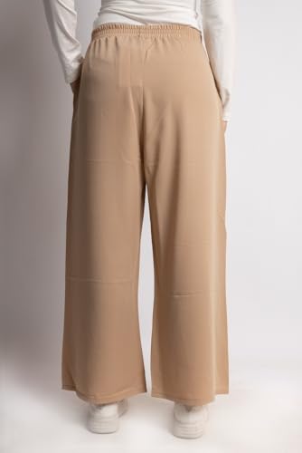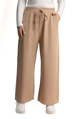 Believe - بنطلون بارجل واسعة برباط وجيبين - لون كافيه - مقاس L