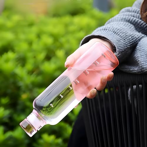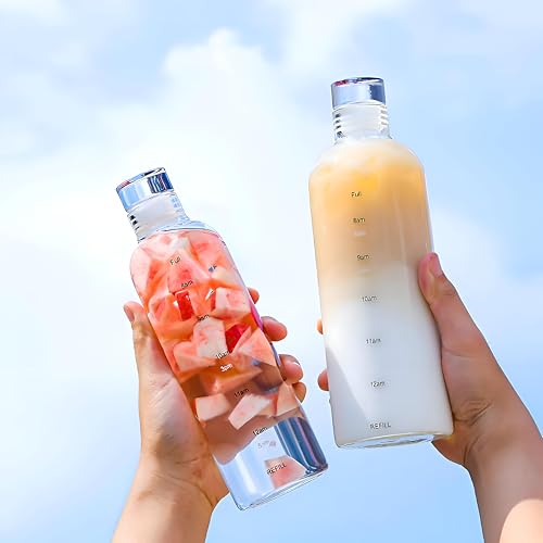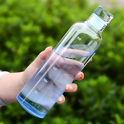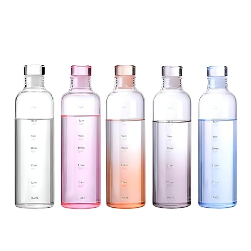 Generic - زجاجة قابلة لاعادة الملء بفتحة واسعة - زجاجة مياه من زجاج البوروسيليكات سعة 750 مل مع علامات وقت لكل ساعة، غطاء لولبي مانع للتسرب، خالية من BPA، هيكل قابل لاعادة الاستخدام، رسومات تحفيزية ملونة