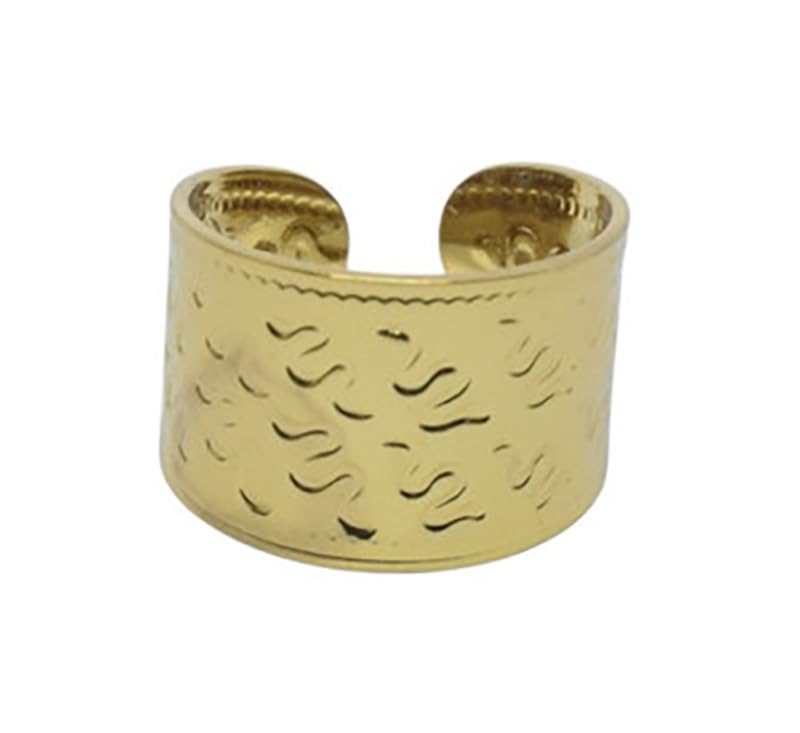 Generic - خاتم عريض من الستانلس ستيل للبنات - ذهبي - 141 - مقاس واحد