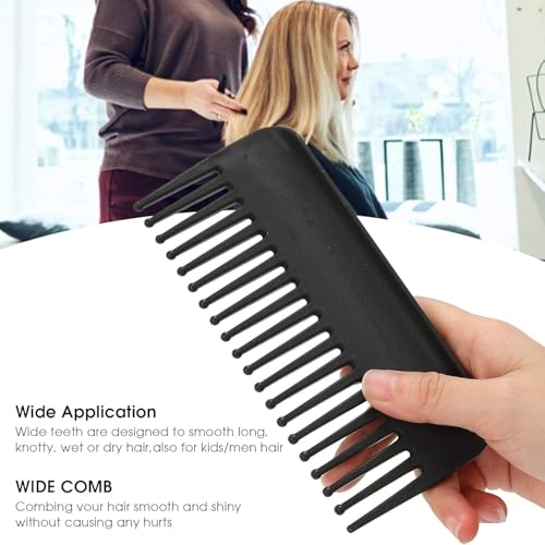 Generic - مشط شعر بأسنان عريضة للشعر المجعد والرطب والجاف، لتصفيف بدون مقبض لفك تشابك الشعر للنساء والرجال، أسود، قطعة واحدة